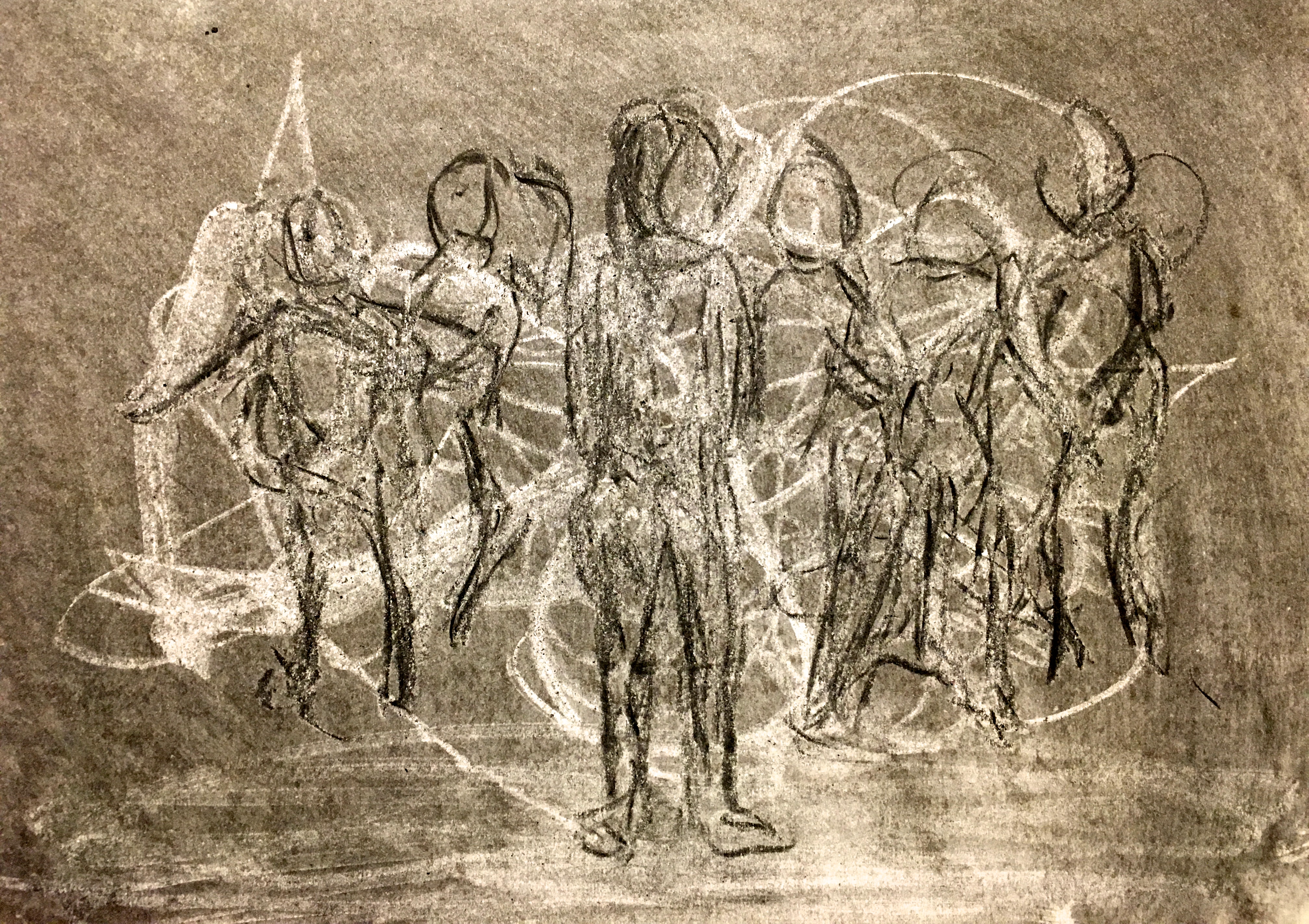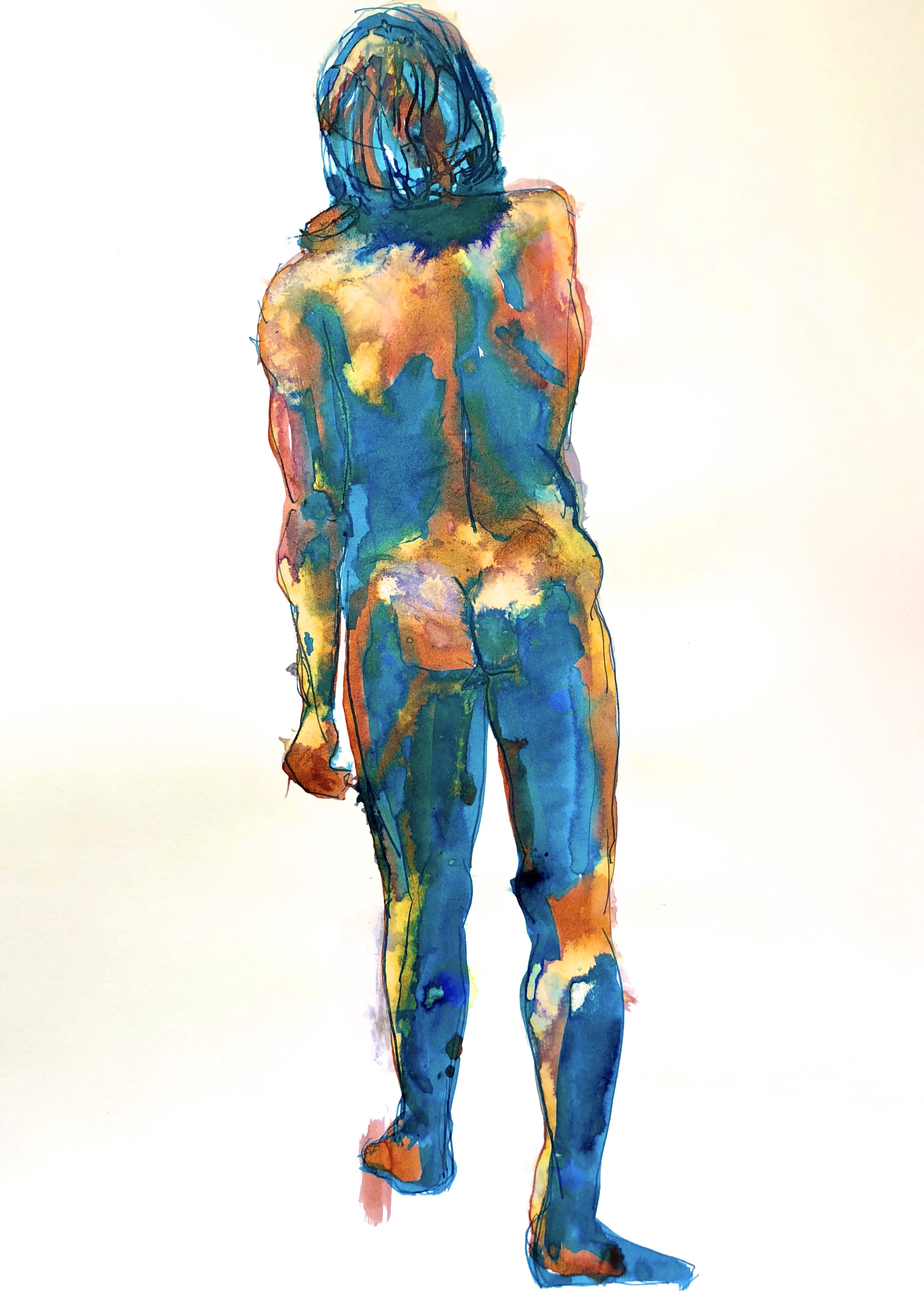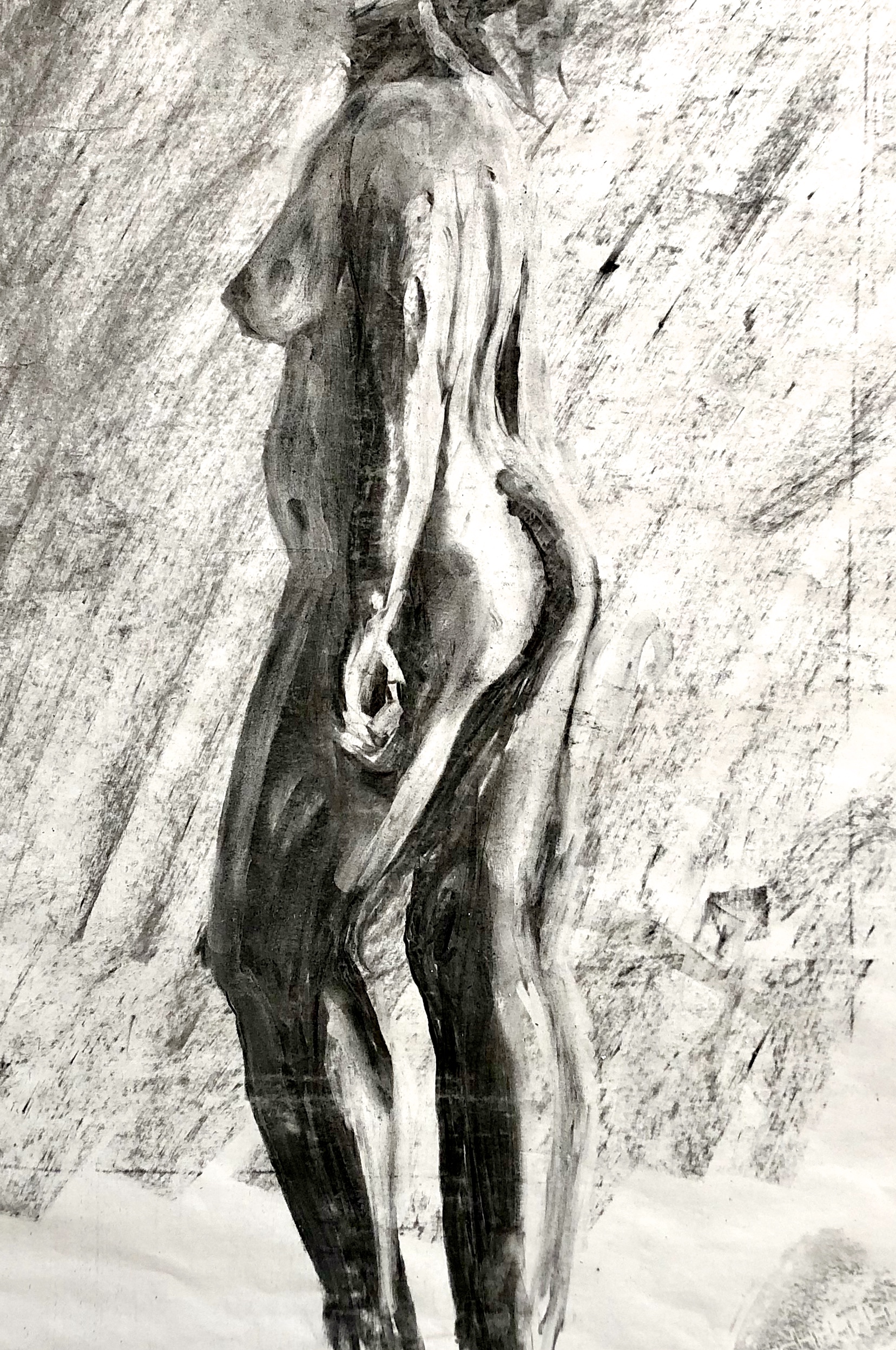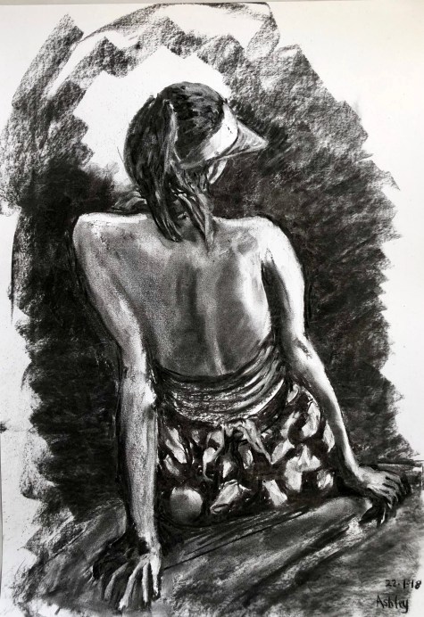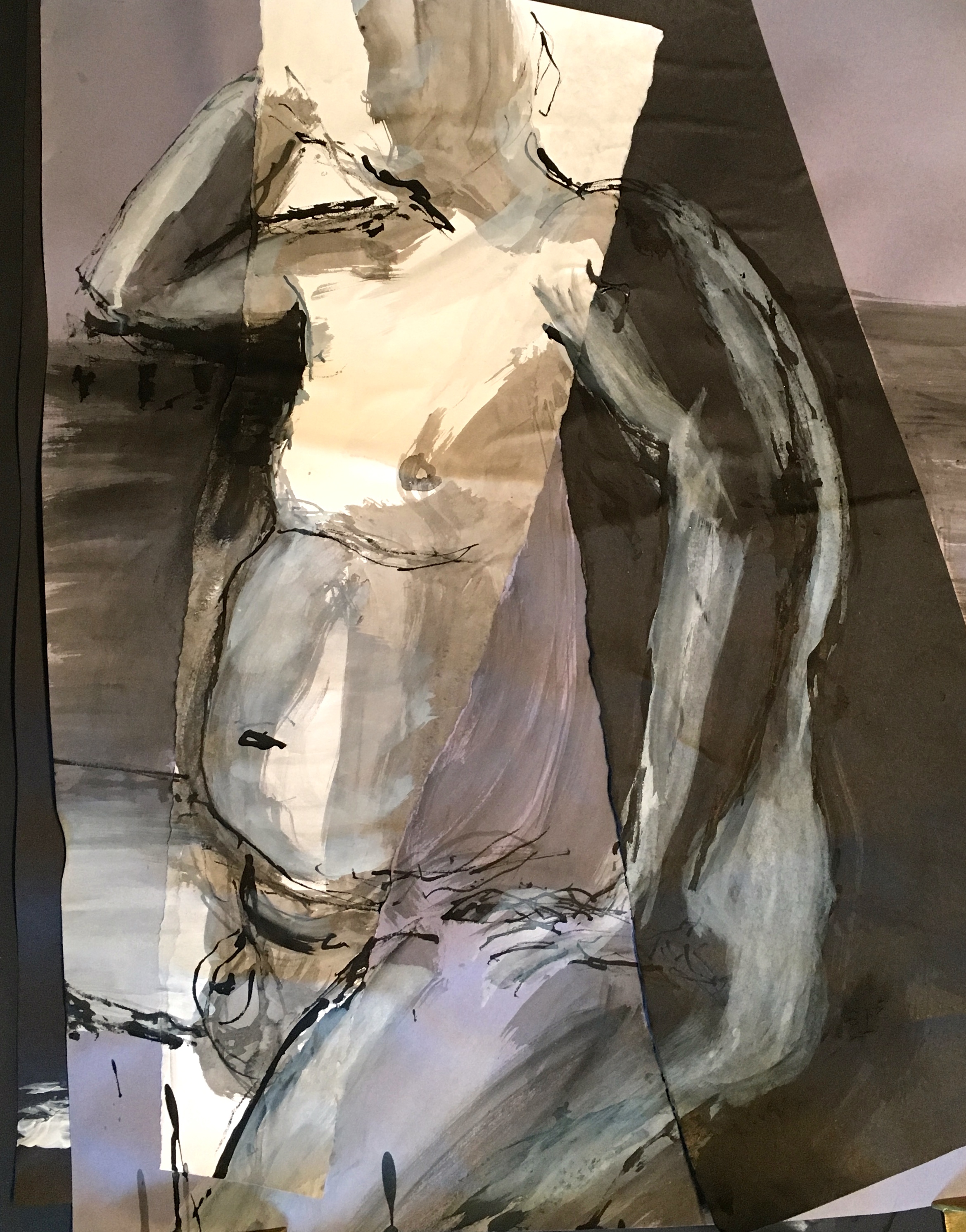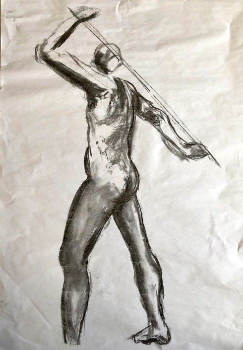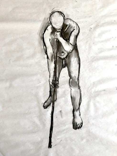 Drawing from life models is so inspirational. It becomes a meditative process, as the line follows the body’s contours, recesses, folds and gestures. You become absorbed in the process, working urgently to reproduce the mood, the attitude, or movement of the model. Charcoal is the usual medium, but recently I have been experimenting with inks. Drawing moving dancers was a challenging and energising experience!