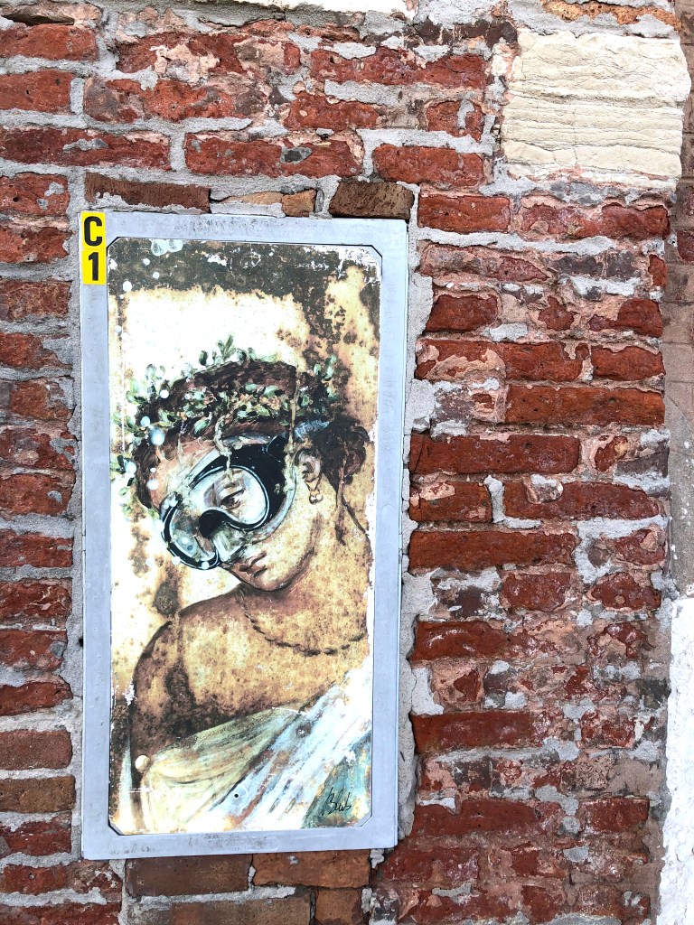 Venice itself is threatened by climate change, reflected in the street art and water lapping over the pavements.