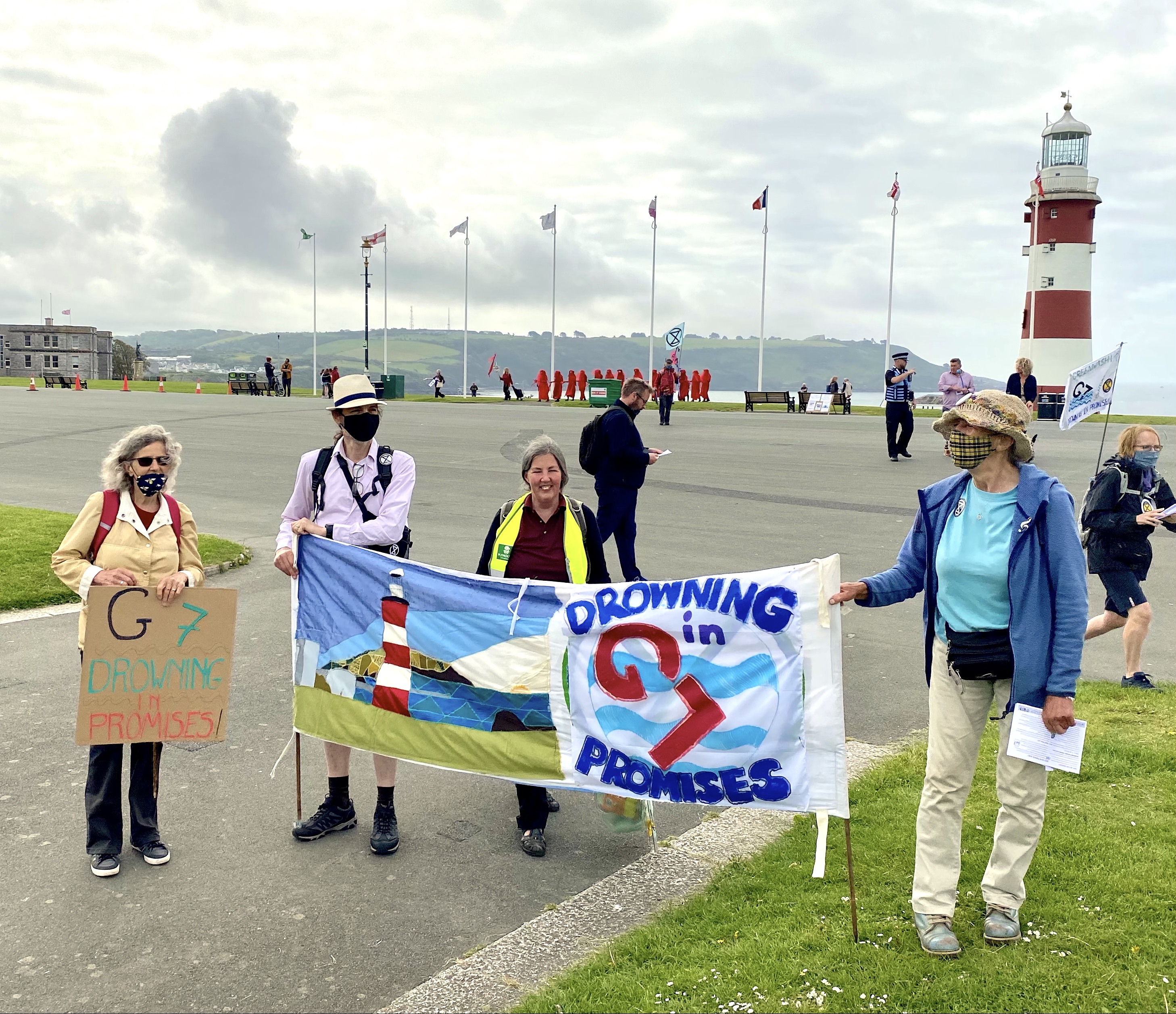 Activists for action on environmental and climate change issues were out in support of those marching to Carbis Bay as they passed through Plymouth, with another 85 miles to go. I joined them dressed as Poly-Mer, the hybrid fish made from plastic packaging.