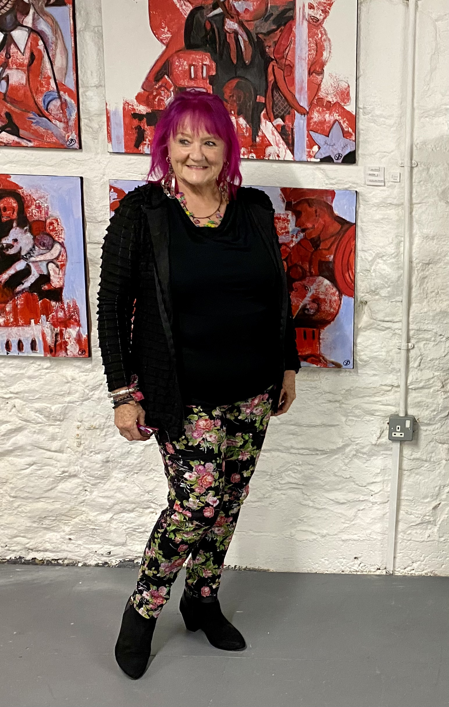 Jane’s powerful work expresses the horror and anguish she feels at the havoc wrought on our lives this year by chaos, corruption and governmental ineptitude in the middle of a pandemic and global catastrophe. And she is still smiling!