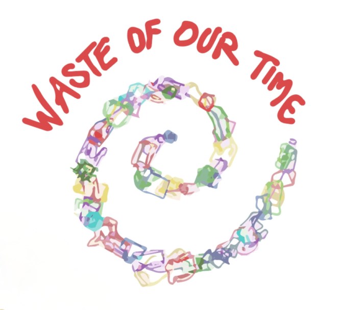 Kate Crawfurd and I are calling our plastic waste spiral sculpture WASTE…OF OUR TIME.